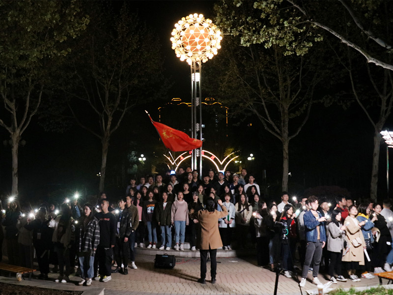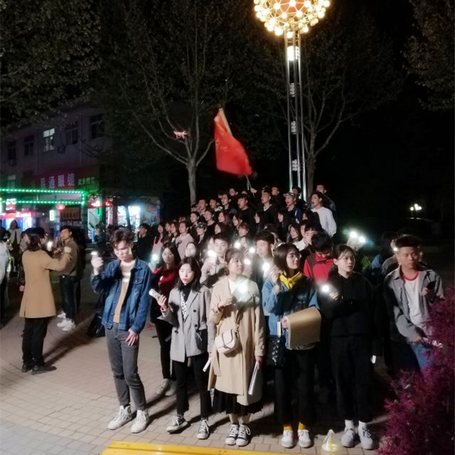图为同学们纷纷打开手机闪光灯点亮夜空