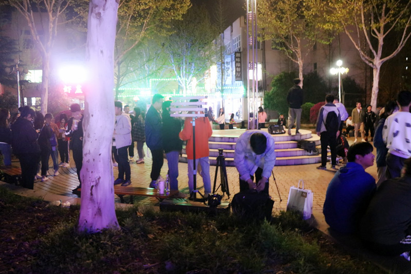 当天,音乐厅正由几位社团成员像往常一样演唱曲目,路过的不少师生纷纷驻足聆听观看。突然,社团成员收起乐器离开,同学们十分疑惑为何今日表演如此早的结束。晚八点整,一阵悠扬的弦乐声从音乐厅后面响起,演奏的正是大家耳熟能详的《同桌的你》,校合唱团两名主唱弹着吉他慢慢从人群中走到舞台中间,这时原本热闹的商业街变得安静,大家都在驻足观看这突如其来的表演。而随着合唱团全体成员慢慢从围观群众中走到舞台中间,开始唱第二首歌《菊花台》时,有不少的群众发出惊叹声,连连称赞此次活动举办的惊喜性:“无法想象之前在我身边小声合唱的人,居然是表演人员,太让人惊喜了!”