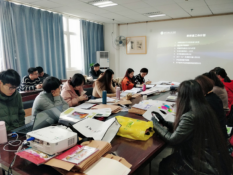 图为艺术与设计学院教师认真聆听教研室主任汇报