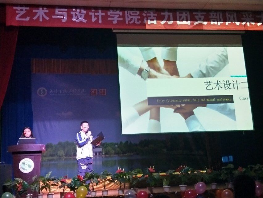 此次比赛主要分为两个部分,第一环节是由参赛班级的团支书通过PPT的形式展现各自团支部成立以来的班级生活,学习以及丰富的团支活动,班级代表上台展开即兴五分钟的演讲,围绕自己抽到的选题进行阐述。第二个部分是各个班级的才艺展示。此次比赛无论是演讲还是才艺表演,都展现了艺术与设计学院同学们的风采,他们的精彩表演赢得现场观众和评委的阵阵掌声。特别是在才艺展示的环节,各个班级拿出来看家本领,使出一股劲为班级争光,每一首歌曲包含对学校的喜爱被他们表现的淋漓尽致。展现着艺院学生的青春与活力,每个班的班级活动都将本次活动的现场气氛推向高潮。