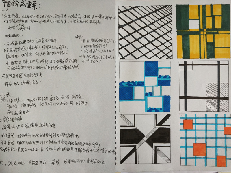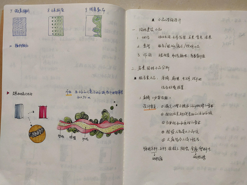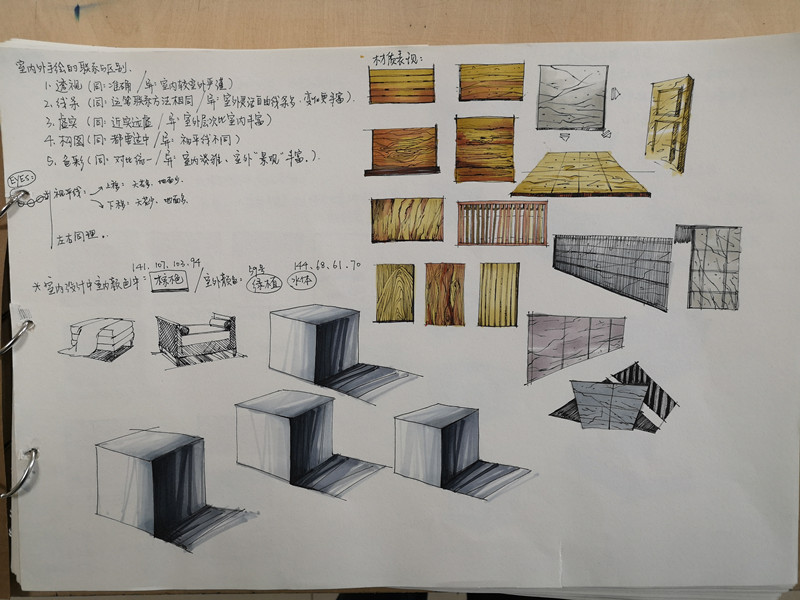 图为张希雅同学《室内外手绘效果图表现》课堂笔记