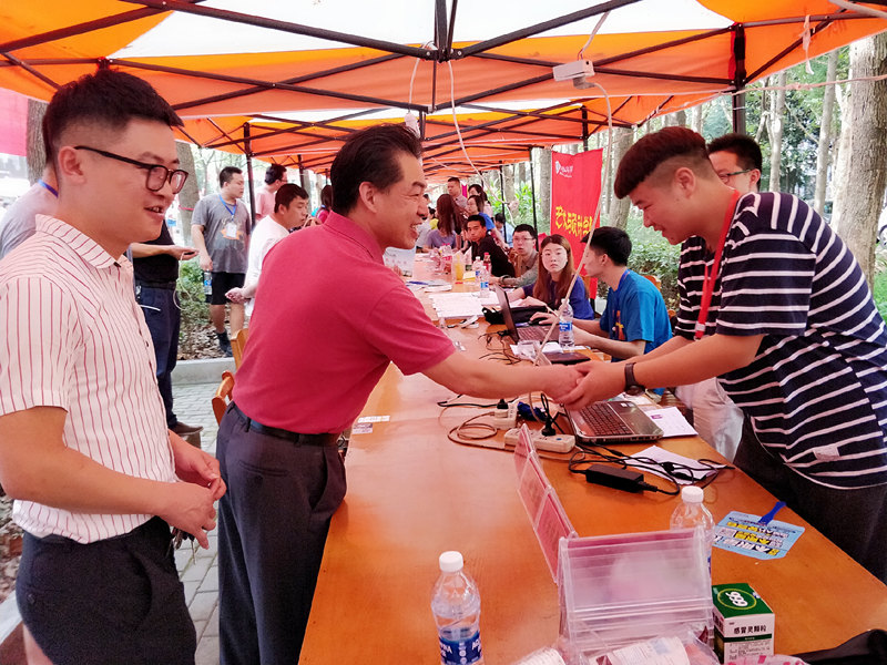 费校长与我院迎新工作人员亲切握手