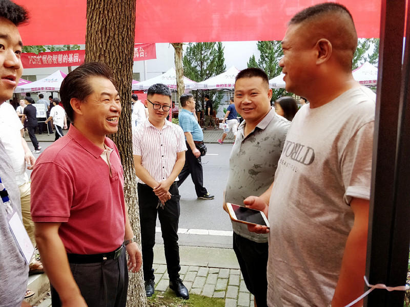 在上午迎新的高峰期,家长跟孩子都托着沉重的行李箱,背着双肩包,虽然天气炎热,也没有阻挡他们前进的步伐,而迎新工作人员的工作也有条不紊地一一展开,他们在迎新工作的筹备中不断提升自己的服务水平,任劳任怨地为家长和学生们提供帮助。就此机会,费校长顶着炎炎烈日去慰问迎新工作人员,并与17级艺设班的周兴刚同学亲切握手,并予以肯定及鼓励。周兴刚同学表示:“身为一名迎新志愿者,这是自己分内的事,理应做好!”