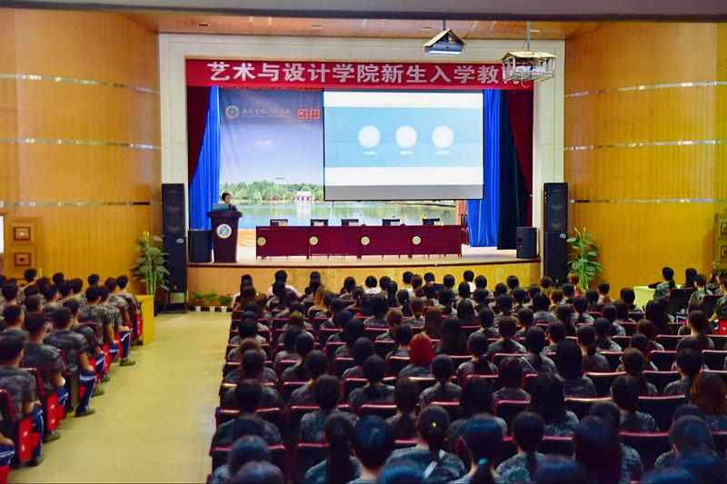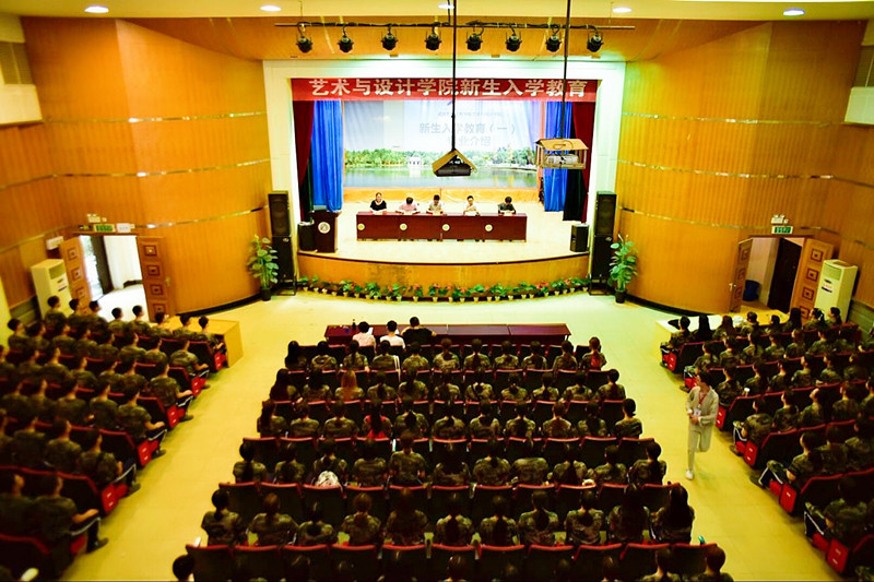 本网讯(通讯员:夏镇杰 摄影:邵子贤)为了帮助新生更好地了解专业、认识专业就业前景,2018年9月9日下午15:00,艺术与设计学院在我校小礼堂开展了新生入学教育(一)——专业介绍,我院常务副院长任家永,党总支副书记陈海浪,院长助理夏镇杰,办公室主任赵俊和动画教研室主任王娟作为教师代表出席,为2018级的新生们进行了一场精彩的专业介绍和专业答疑。