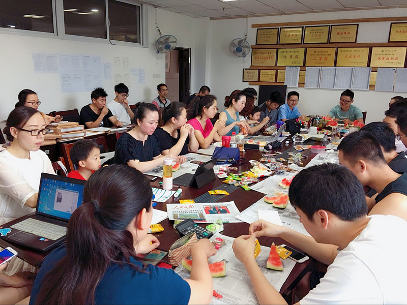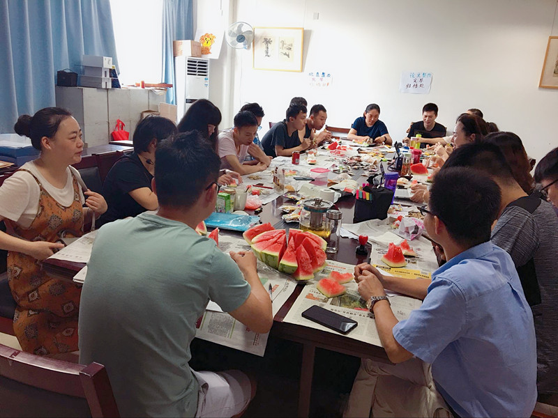 会议之前,为感谢老师们在暑期“一评三促”工作阶段的辛勤付出,院里在本学期工作日的最后一天特别安排了会间茶歇供老师们享用。会上,任院长首先对老师们在期末所做的各项工作进行了肯定,对所有老师在本科审核评估关键时期工作毫不懈怠的精神表示了赞扬。针对期末试卷和毕业论文(设计)的抽查结果,任院长进行了总结性的通报,并表示,本次结果总体上令人满意,相较于往年的检查情况有了质的飞跃,这离不开每一个老师在其中所进行的自查和互查。但是在期末试卷和毕业论文(设计)的规范性上,还有提升的空间,后期需要老师们继续配合学校各项检查工作,遇到问题继续进行整改。随后,任院长还就近半年我院赛事组、专利组和转型发展组的工作成果进行通报,其中赛事组夏镇杰老师个人获奖6项、指导学生获奖25项,肖丽老师个人获奖3项、指导学生获奖3项,王娟老师指导学生获奖3项,周芬老师个人获奖1项、指导学生获奖1项。任院长对以上老师进行了奖励,并表示成绩属于过去,未来任重道远,鼓励老师们再接再厉,在各项级别的比赛中赛出佳绩,并号召所有老师像他们学习,通过以赛促教的方式将课程内容进行优化。对于下一学期的工作,任院长表示关键时期,责任重大,任务艰巨,通过本科审核评估的迎评工作,我们重新审视了我们的问题,下一阶段将会继续总结问题,针对问题逐一进行整改,将各项工作落实规范。