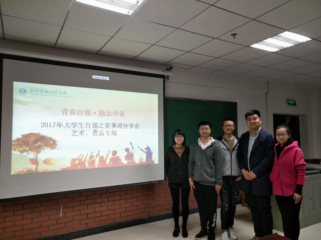 本网讯(通讯员 李源 摄影 李源)3月25日晚,2017年度“大学生自强之星”巡回报告会在钱学森大楼212教室举办,三位“大学生自强之星”代表杨先威、刘桂艳、刘龙山先后登台,为我院及食品科技学院获得国家助学金,国家励志奖学金,勤工助学等100多名学子宣讲自强事迹,报告会由艺术与设计学院2016级艺术设计(环境艺术设计方向)学生傅贇涛主持。
