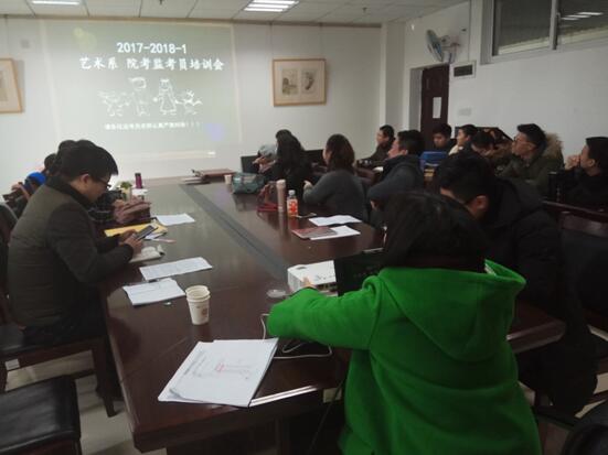 本网讯(通讯员宋颖颖摄影吕道远赵俊)2018年1月11日,艺术系在7#306会议室开展了期末考试监考员培训会,会议由艺术系副主任任家永主持,教学秘书牛巧巧老师主讲。