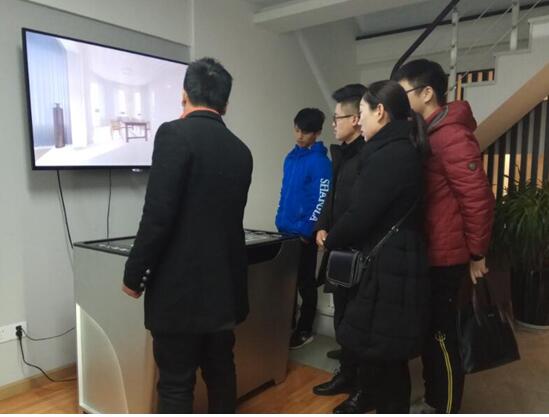 艺术系领导老师在灵图互动公司体验虚拟家装平台