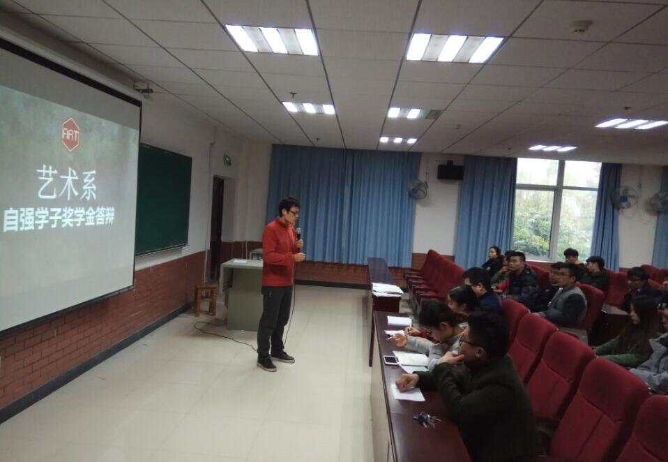 11月28日下午16:00,艺术系在钱学森大楼212教室开展自强学子奖学金答辩,艺术系副主任任家永、总支副书记邵国超、主任助理吕道远及全体辅导员老师担任评委。
