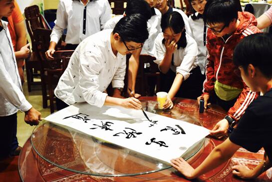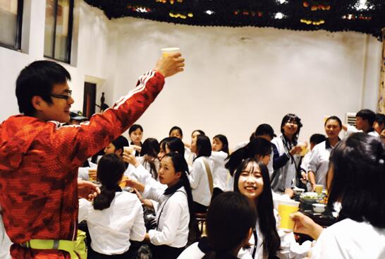 艺术系副主任任家永出席本次活动,他赞扬并肯定了同学们的厨艺和热情,现场用毛笔写下“生院味道,食艺为要”为大家助兴。艺术学子深受鼓舞,不甘示弱,写下“艺术精英,色艺双馨”、“民以食为天,艺以德为先”回应了艺术系老师们的无私贡献和付出,并现场速写聚餐场景。