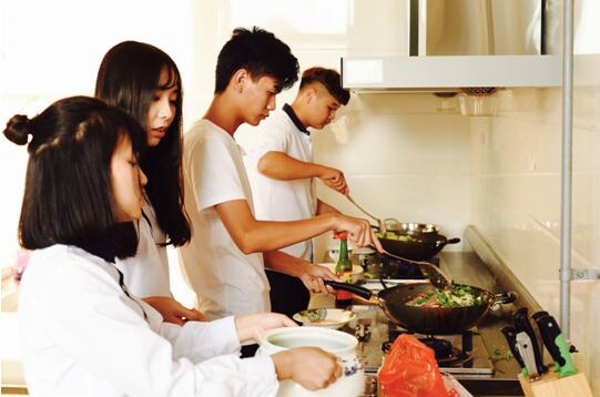 艺术系2017级新生全体出动,有的去买食材,有的打下手,有的当大厨,有的收拾整理,他们要为辛苦军训的教官、老师和同学们准备一餐感恩晚宴。