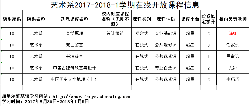 艺术系2017-2018-1学期在线开放课程信息