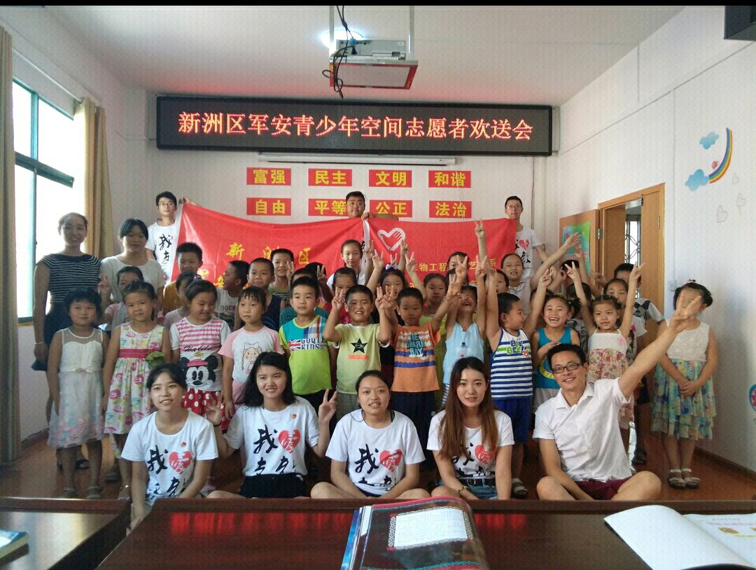 据悉,本次青少年暑期社区托管项目由共青团湖北省委发起,属于武汉市人民政府2017年十件实事。在暑期分别会有两批志愿者进驻青少年空间。第一批进驻军安青少年空间的志愿者们来自武汉生物工程学院艺术同行志愿服务队,他们在为期一个月的教学活动中,开展了各种特色教学活动,让小朋友们受益颇多。在这次欢送会上,志愿者向小朋友们道别时,有小朋友流下了不舍的泪水,这是对志愿者们这一个月的付出给予的最高评价。相信第二批志愿者拿到第一批志愿者的接力棒后,将传承志愿者精神,给军安青少年空间的小朋友们一个更完美的暑假。