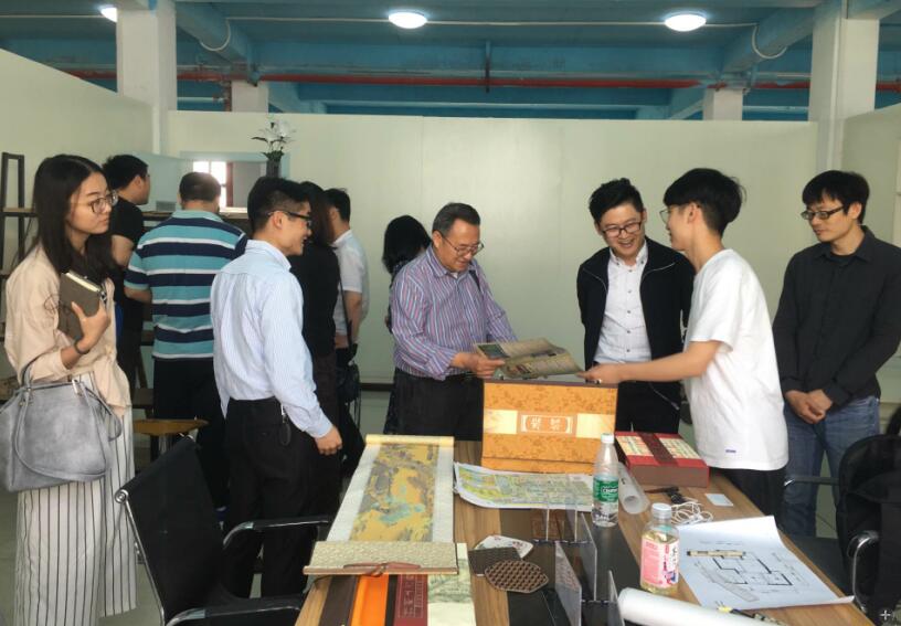 参观我校筑梦众创空间时,楚江蓝手绘设计工作室的黄逸将自己亲自手绘的校园地图赠送给武汉设计工程学院的罗书记