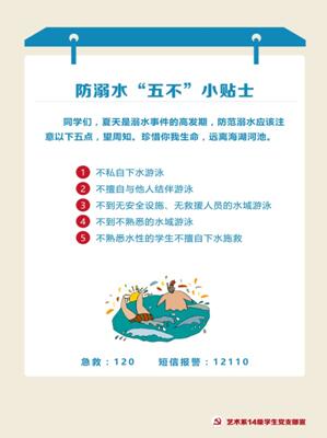活动分为两部分,深入宿舍发放防溺水“五不”小贴士为主,各楼栋张贴海报为辅。发放小贴士的过程中,支部成员们通过新闻报道中一个个真实案例让学弟学妹们意识到盲目下水游泳的危险性,从而提高警惕,自觉远离周边海湖河塘。活动强调“珍爱生命,安全第一,预防溺水,远离危险”。
