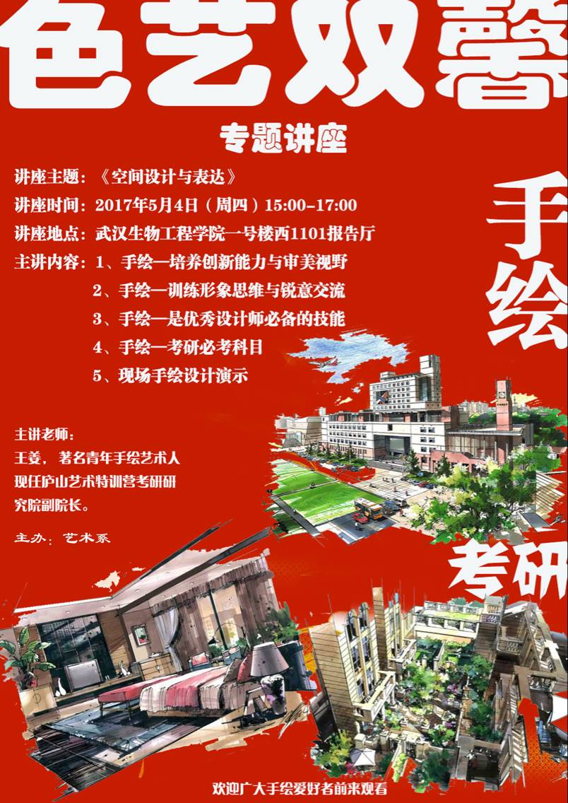 武汉生物工程学院艺术系优秀毕业生,优秀校友——王姜学长携手绘专题讲座强势来袭,欢迎大家光临现场,听取讲座。