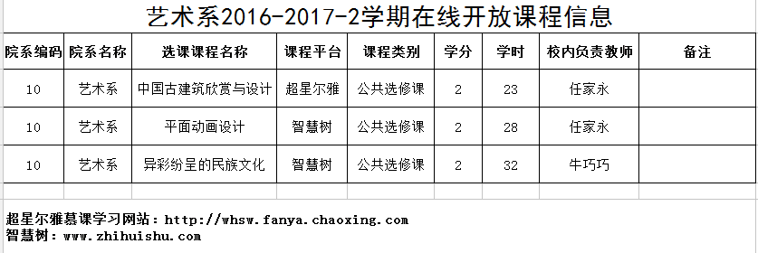 艺术系2016-2017-2学期在线开放课程信息