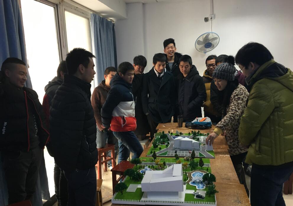 据了解,这门课要求学生以小组完成景观模型制作,并能通过景观模型来表达自己的设计思想,可选取武汉本地任何场地进行分析,并制作模型、PPT和视频介绍等。有的小组设计改造了钱学森广场。有的小组设计改造了武汉市民之家,对于学生的模型作品,老师们精心点评和指导,让学生们收获颇丰。