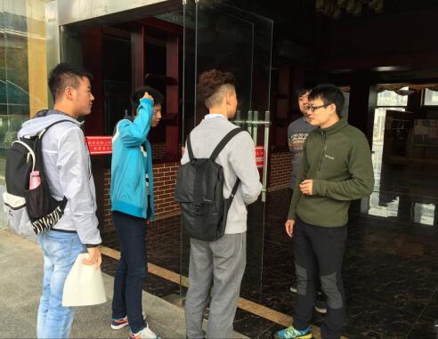 邵书记一行在钱学森大楼门口批评教育迟到学生