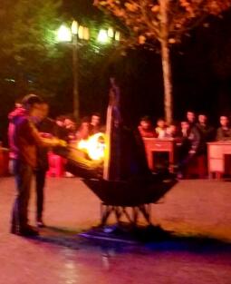 艺术系副主任任家永、系总支副书记邵国超共同点燃篝火