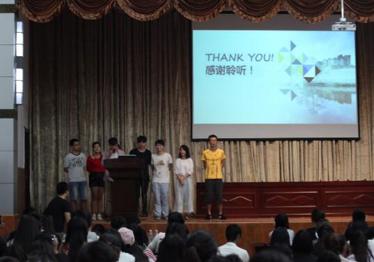 接着,艺术系创客空间的五支创业团队向2016级新同学介绍并展示了艺术系在双创教育方面取得的成果。第一支团队是来自13级视觉传达设计本科班的黄展毅同学领导的“码艺网页设计工作室”,工作室有自己奋斗的目标和远大的规划,黄展毅鼓励学弟学妹们加入创新创业的大潮中,让大学生活变得充实而精彩。第二支团队是来自15级平面专科班姜豪负责的私人订制照相体验馆,他们从专业知识出发,主打平面广告设计以及微视频拍摄等业务。第三支团队是来自15级室内设计班的黄逸同学创建的“楚江南”工作室,工作室目前已承接了很多项目,创业路上是满满的收获和成长。第四支团队是来自艺术系动画专业的“唯韵传媒”团队,团队负责人刘苗分享了唯韵传媒成长和发展的历程,鼓励大家敢于尝试、勇于创新。第五支团队是14级动画班李潇同学带领的陶瓷工作室团队,他们向大家展示了制作陶瓷过程的魅力,邀请大家多去他们的生产基地考察,并欢迎新同学加入其团队。