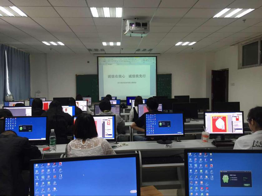 班会开始后,每位同学积极发言,说出了自己对“诚信”的认识和见解,并提出一些校园里和社会上出现的一些关于“诚信”缺乏的现象进行讨论,对于人与人之间的信任问题,15级动画班的叶文琼同学表示:诚信,以诚待人,信任他人,以心交流是其最中心的内容。试问无论是古代还是现今,人与人的交流何处不需要诚信?所以,不管是生活还是工作中,诚信都是不可缺少的。在各班班会上辅导员和班主任的用一个个例子,和用心准备的PPT,向同学们展示了与“诚信”相关的资料。