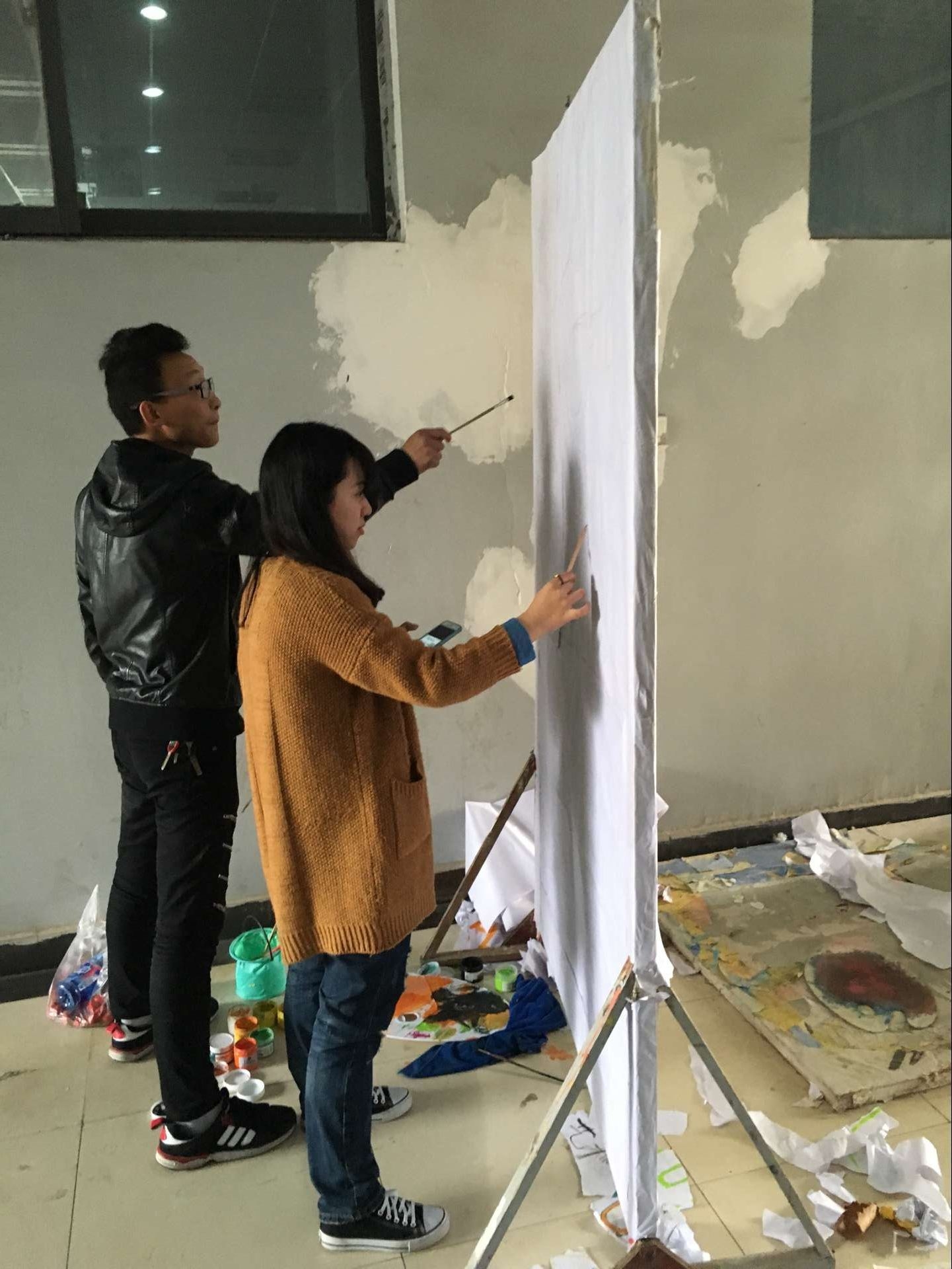 画宣传板的青协同学