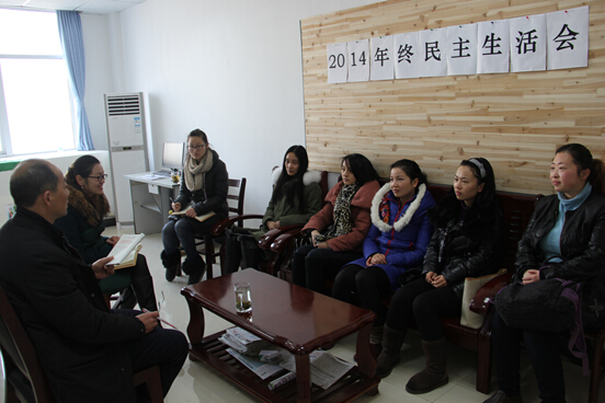 本网讯(通讯员 宋颖颖)2014年2月6日上午10:00,艺术系在钱学森大楼303室召开了2014年年终民主生活会,会议以教研室为单位一一进行,由艺术系主任王宝桥教授主持,艺术系全体教师、辅导员参会。