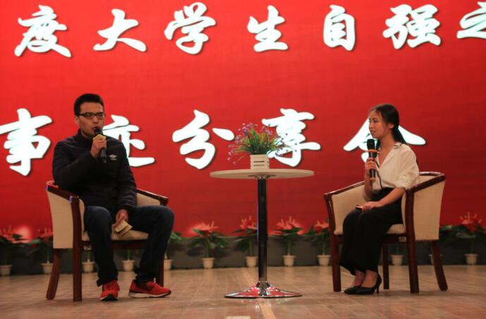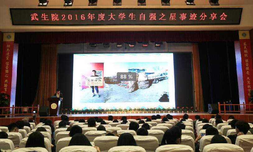 本网讯(记者 陈金泽 摄影 肖亚慧)3月14日下午,由党委学工部、校团委联合组织的2016年度“大学生自强之星”事迹分享会在大礼堂启动,武春成、刘帅、崔莉娟、王友权等4名我校2016年度“大学生自强之星”先后与同学们分享了他们自强自立、拼搏上进、奉献社会的感人事迹。