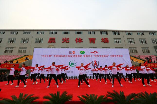 据晨光新闻网讯(记者 任丽琼 摄影 肖亚慧)昨日(11月30日),由省、市计划生育协会联合主办的“生命之舞”中国项目(湖北·武汉)造势活动暨第29个“世界艾滋病日”主题宣传活动在我校晨光体育场举行。来自省内10所高校的千余名学子共跳“生命之舞”。