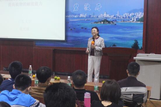 随后,中国植物生理学会理事、华南师范大学博士生导师王小菁教授作了题为《花瓣生长调控》的报告。王小菁教授介绍,花瓣是花器官的主要组成部分之一,其大小、形状和色彩在保护雄蕊和雌蕊、吸引昆虫、完成植物有性生殖的过程中具有重要作用,花瓣的形状和大小对于观赏花卉品质的形成具有重要贡献,她还阐明了花瓣形态建成的分子机制。四川省杰出青年、四川农业大学博士生导师袁澍教授为师生们作了《数据处理与SCI论文写作》报告,他详细讲解了实验过程中数据如何处理以及如何发表高质量SCI文章的技巧。