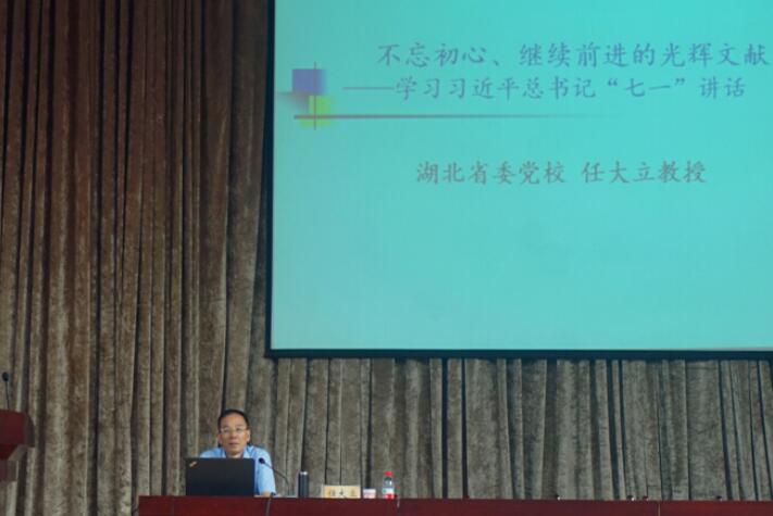 7月11日上午,湖北省委党校任大立教授为培训班学员作题为《不忘初心、继续前进的光辉文献——学习习近平总书记“七一”讲话》的首场报告。