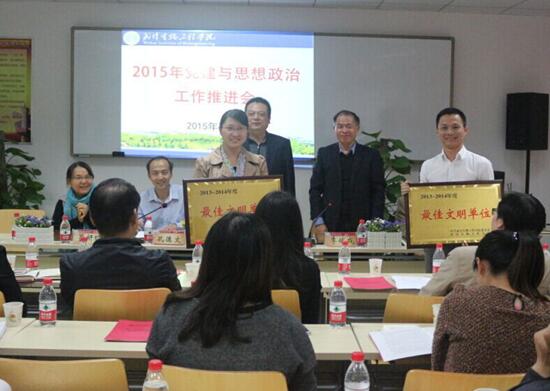 党委副书记李斌成宣读了《校党委关于表彰2013—2014年度精神文明建设先进集体和先进个人的决定》,校领导分别为“最佳文明单位”和“文明单位”颁发奖牌。