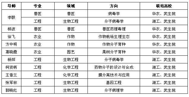 据晨光新闻网讯(通讯员 李向慧)经省人民政府学位委员会批准,2014年年底,我校与华中农业大学、湖北工业大学等两所高校签署了《联合培养专业硕士学位研究生(以下简称“联培研究生”)协议》,正式启动联培研究生工作。经招生单位遴选和审定,我校共有10名优秀教师获批成为硕士生导师。截至目前,2015年联培研究生招生工作已圆满结束。其中,招收与华中农业大学联培研究生4名,涉及的专业为兽医、农业(含作物和园艺两个领域)两个专业;招收与湖北工业大学联培研究生3名,涉及的专业为工程(含生物工程和化学工程两个领域)专业。