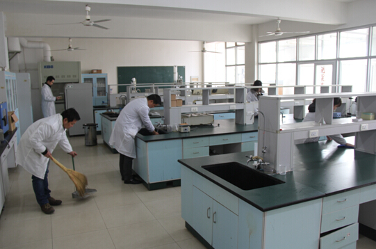 建筑工程学院的教师们在该院新教学楼学生研讨室打扫卫生