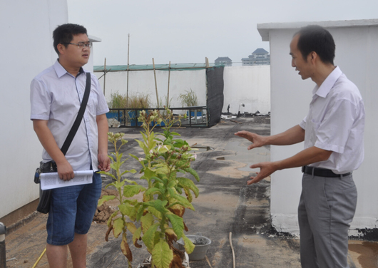 生命科学与技术学院博士教师方中明热情地将孔德文一行带到了顶楼的温室,兴致勃勃地介绍自己科研进展情况。“促进根系对氮的吸收”、“提高表达”、“抗倒扶力”、“表型”等专业术语不时从他嘴里蹦出来,对于目前科研进展的情况,方中明非常兴奋:“我获批的国家自然科学基金项目是构想对一个基因进行研究,但现在我同时在进行三个基因的实验。”