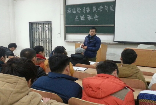 在生物科学与技术系2013级生物技术专业主题班会上,班主任黄方一就加强学委会的执行力,认真落实学校关于加强学风建设的各项规定提出了建议。他要求同学们要从“三早”做起,从上课不迟到、不缺课做起,向优良学风班级迈进。他还以该系杨洋同学春节期间回乡办“春晚”为案例,鼓励同学们积极参加社会实践,利用各种机会锻炼和提升自己。