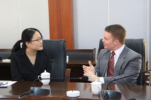 据晨光新闻网讯(记者 任丽琼)11月6日下午,美国欧道明大学语言中心主任Mr.David H. Silivs、驻京办事处主任曹超平和项目负责人张卫东一行三人来我校参观访问,并就双方进一步开展合作与交流事宜进行洽谈。