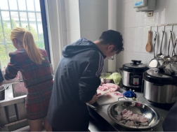 “有劳动有付出,才能真正体会品尝成果时的愉悦。”这是新生宴上反复强调的一句口号。在准备宴会的过程中,学生们各司其职进行材料的处理、清洗餐具等环节。令人惊喜的是,小小厨房汇聚了来自各地的“大厨”,擅长做菜的学生们各显神通亮出自己的拿手好菜,在一片忙碌中,一张张陌生的脸庞也渐渐熟络起来。