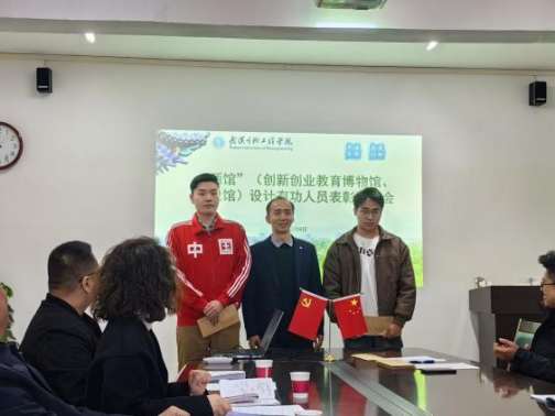 校党委副书记、副校长孔德文为参与创新创业教育博物馆设计的有功人员颁发奖金