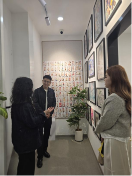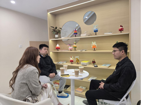 随后,经王芷怡校友引荐,走访团队来到阳逻鲸灵岛艺术空间。该机构主营青少年儿童美术培训,涵盖素描、插画等课程,现有学员规模超过200人,师资缺口较大。目前机构教学主要负责人为艺术学院2024届环境设计专业校友,老师们与杨校友亲切交流,详细询问其职业发展历程与岗位能力需求,并邀请他适时回母校为在校生分享从业经验。校企双方就人才培养与供需、实习实训基地建设等开展了深入沟通交流。