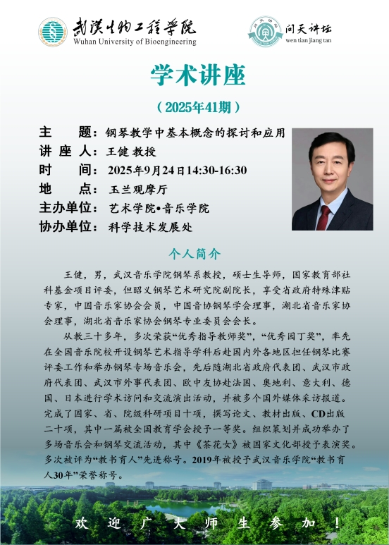 美育浸润系列活动之美育论坛—— 王健教授《钢琴教学中基本概念的探讨和应用》