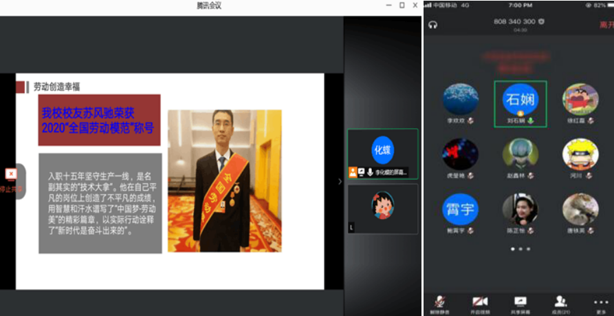 图为17级学生党支部线上开展学习优秀校友苏风驰、洪斌先进事迹主题班会