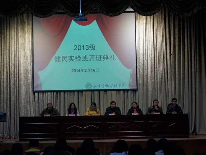 (通讯员 肖飞)2月16日19时30分,2013级健民实验班开班典礼在钱学森报告厅举行,副校长侯祖飞、教务处副处长吴杰,制药工程系副系主任刘焰、副系主任孙桂芝、党总支副书记余汉兵等参加典礼,教务处处长董妍玲主持会议。
