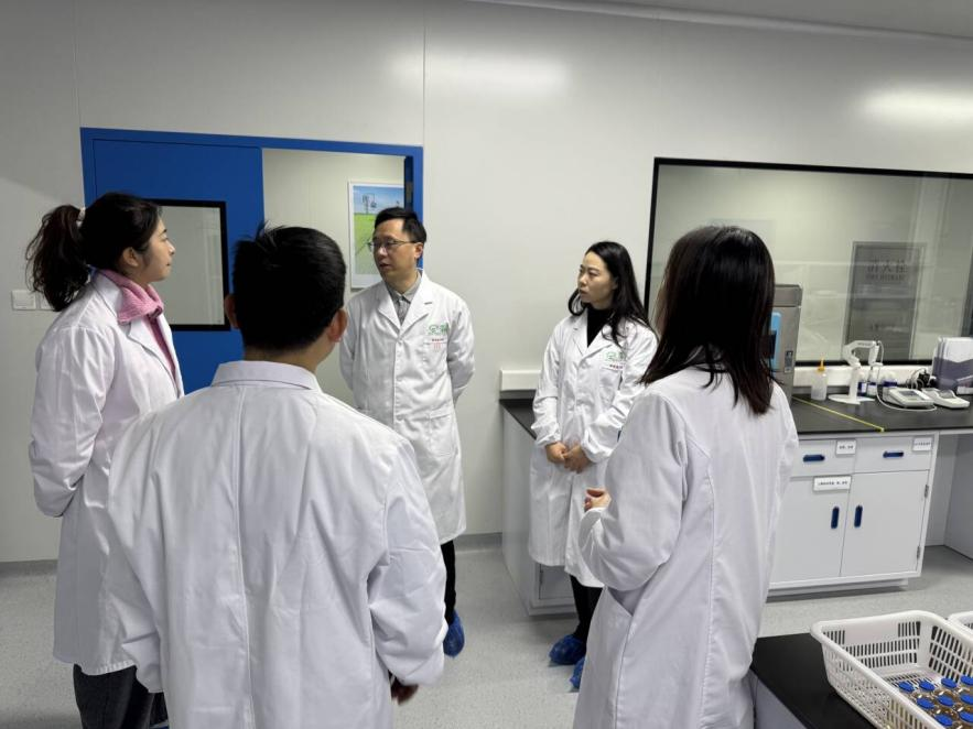 在武汉禾元生物科技股份有限公司,考察组实地走访了企业文化展厅与中试车间,直观了解企业生产运营与技术研发情况。期间,柯贤炳一行亲切看望了学校首届禾元生物订单班-2026届在岗实习学生,细致询问他们的工作内容、生活保障及实习收获,并与企业负责人围绕下阶段订单班学员实习就业安排、课程体系优化、教学改革推进等展开深入交流,为进一步完善订单式培养模式凝聚共识。