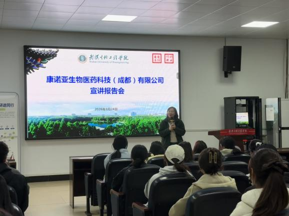 本网讯(通讯员 刘欢欢)3月24日,康诺尔生物医药科技有限公司专场宣讲会在一号楼南1102顺利举行。本次宣讲会吸引了众多应届毕业生及低年级学生到场参与,现场座无虚席,气氛热烈。