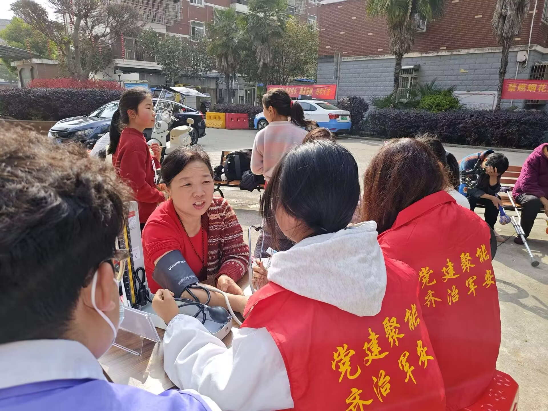 活动现场,志愿者们分工明确、服务有序,充分发挥医药专业特色,开展多项便民服务。在健康义诊服务中,志愿者们为社区居民免费测量血压,认真记录测量结果,细致询问居民身体状况,结合春季时节特点,耐心讲解春季养生、慢病管理、合理膳食、科学用药等健康知识,认真解答居民提出的各类健康疑问,引导居民树立健康生活理念,增强自我保健意识。