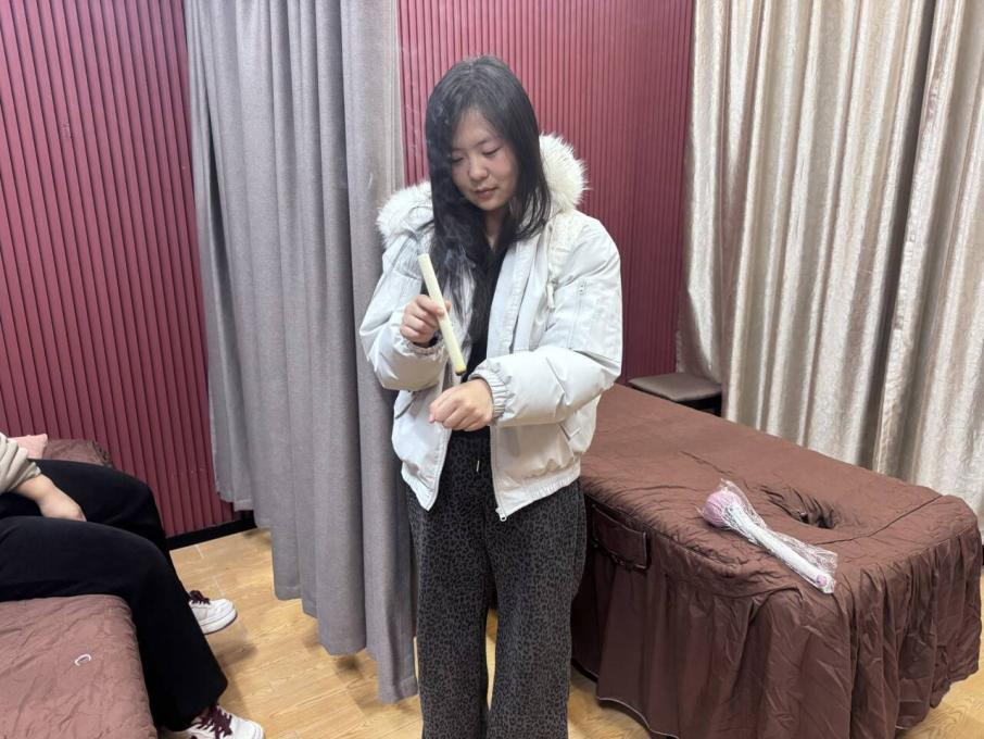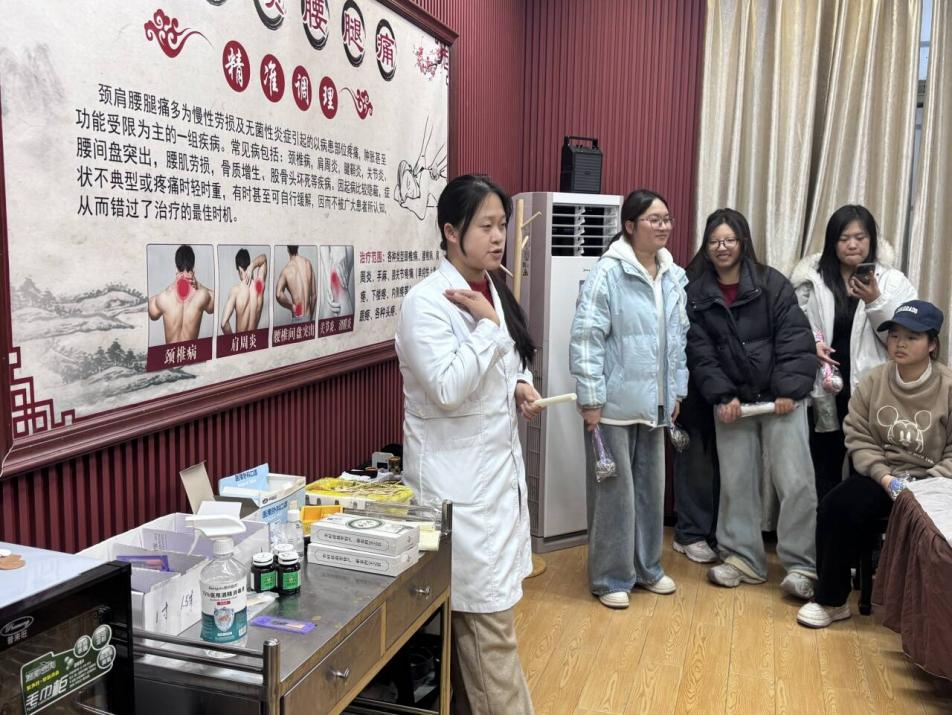 活动现场,王子恩老师首先围绕艾灸技法展开系统授课。从艾灸的基础原理入手,详细讲解了艾灸通过温热刺激经络穴位以达到温通气血、调理身体的核心逻辑,让学生对艾灸的养生机理有了科学认知。在实操教学环节,示范了艾条的正确握持方式,明确了重点施灸部位,并着重强调了施灸过程中的安全注意事项。学生们近距离观察实操细节,主动提问交流,在老师的指导下初步掌握了艾灸基础操作方法。