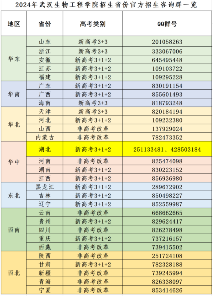 四、武汉生物工程学院各省(区、市)招生咨询群