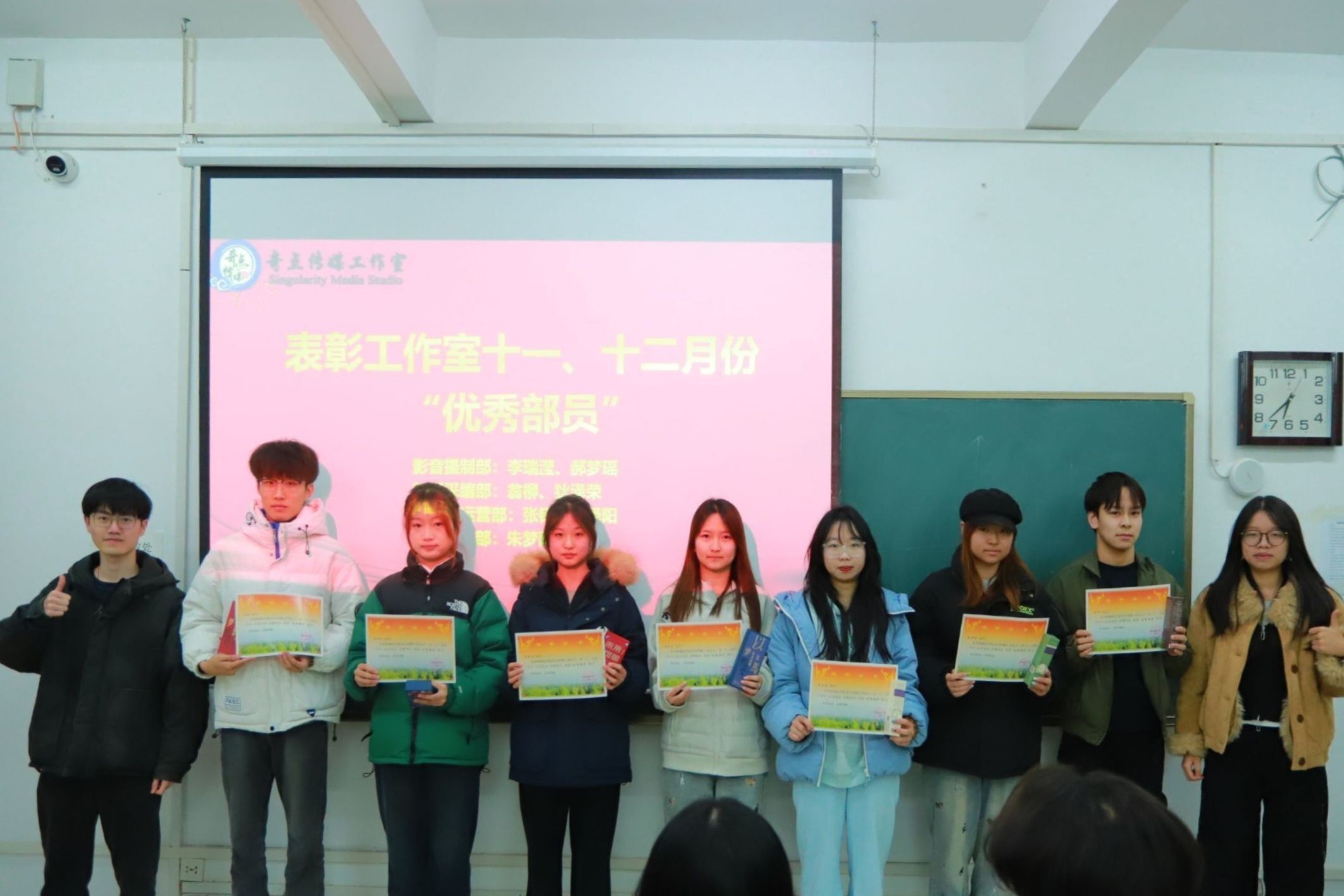 初心如磐,笃行致远。此次期末表彰大会的顺利召开,既是对本学期工作的圆满总结,更是新征程的全新起点。希望奇点传媒工作室全体成员能够再接再厉,保持初心,认真学习、扎实实践,携手做好学院宣传相关工作,共同进步成长!